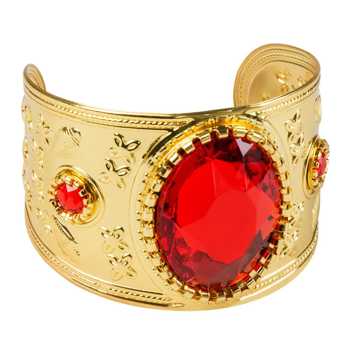Schitterende gouden armband met grote rode stenen. Geschikt voor bijvoorbeeld een epyptische of zigeuner outfit.
