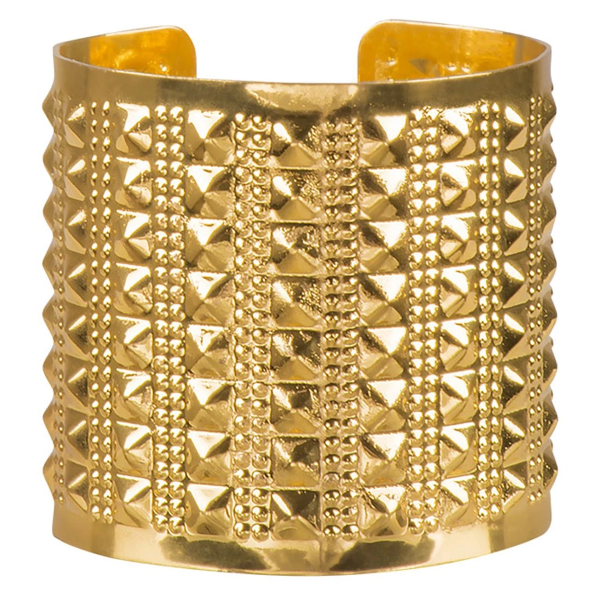 Schitterende, brede gouden armband. Geschikt voor bijvoorbeeld een epyptische of zigeuner outfit.