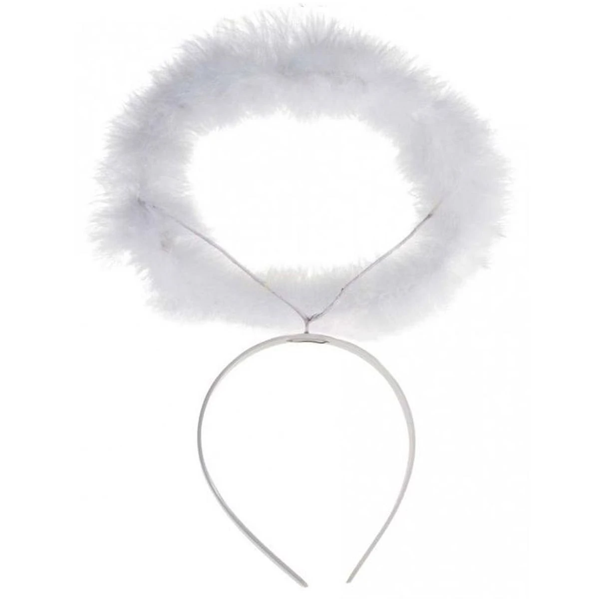 Mooie witte halo / aureool met veertjes. Het aureool is gemakkelijk te buigen, een perfect accessoire voor je engel of cupiod outfit!