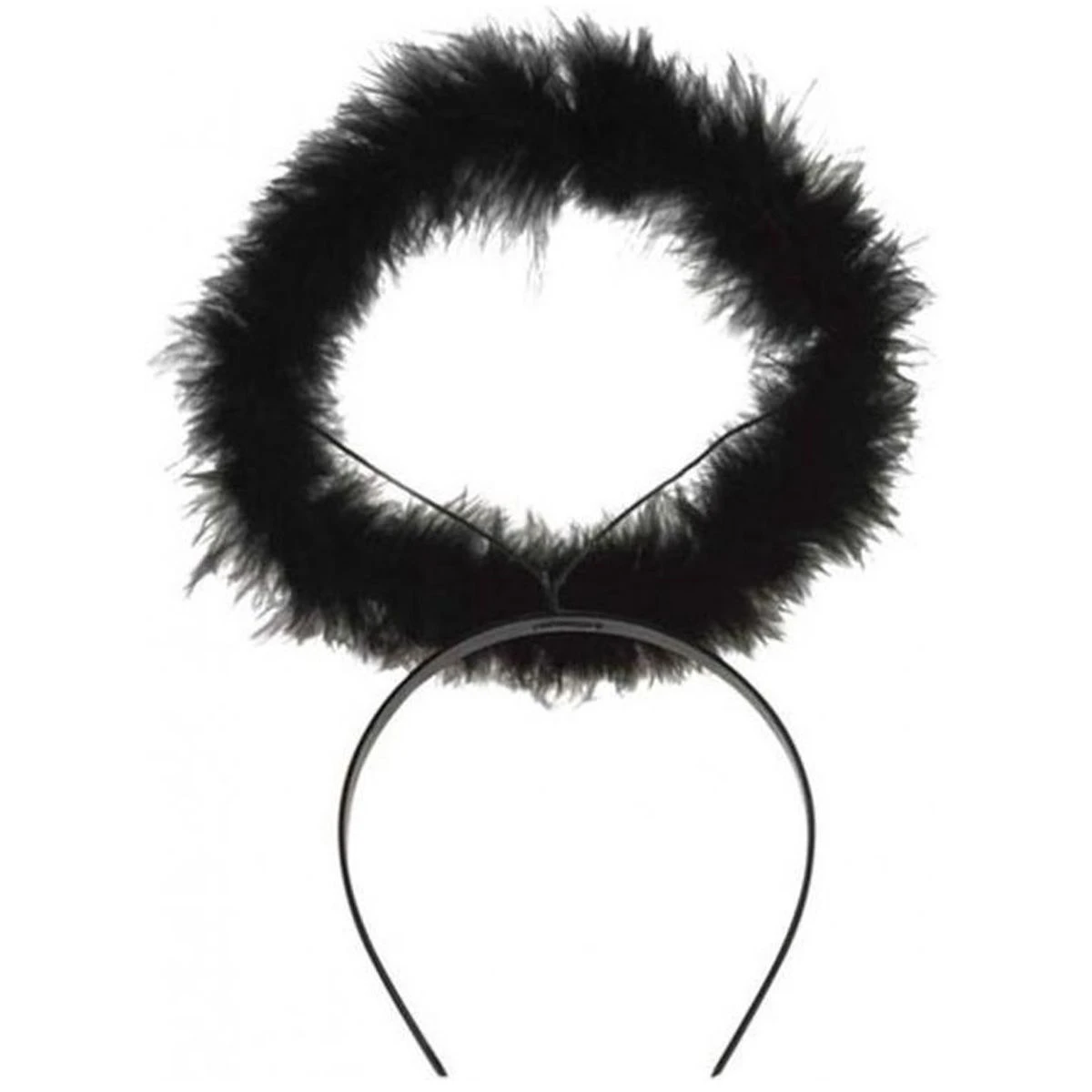 Mooie zwarte halo / aureool met veertjes. Het aureool is gemakkelijk te buigen, een perfect accessoire voor je duivel of Halloween outfit!