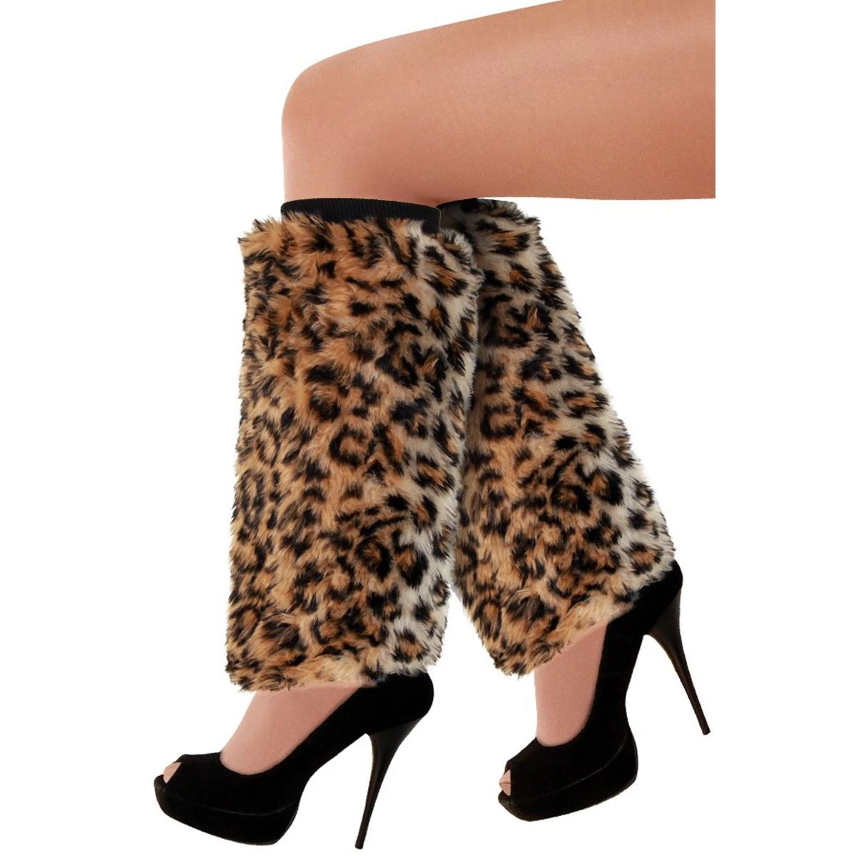 Beenwarmers van imitatiebont in panter print. Leuk voor een foute party!