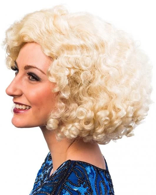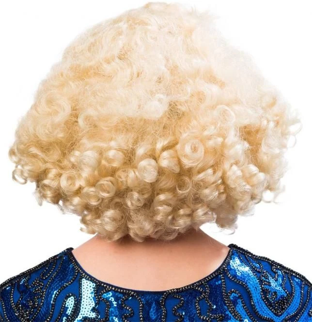 Korte bob pruik met blonde krullen in jaren 20 stijl.