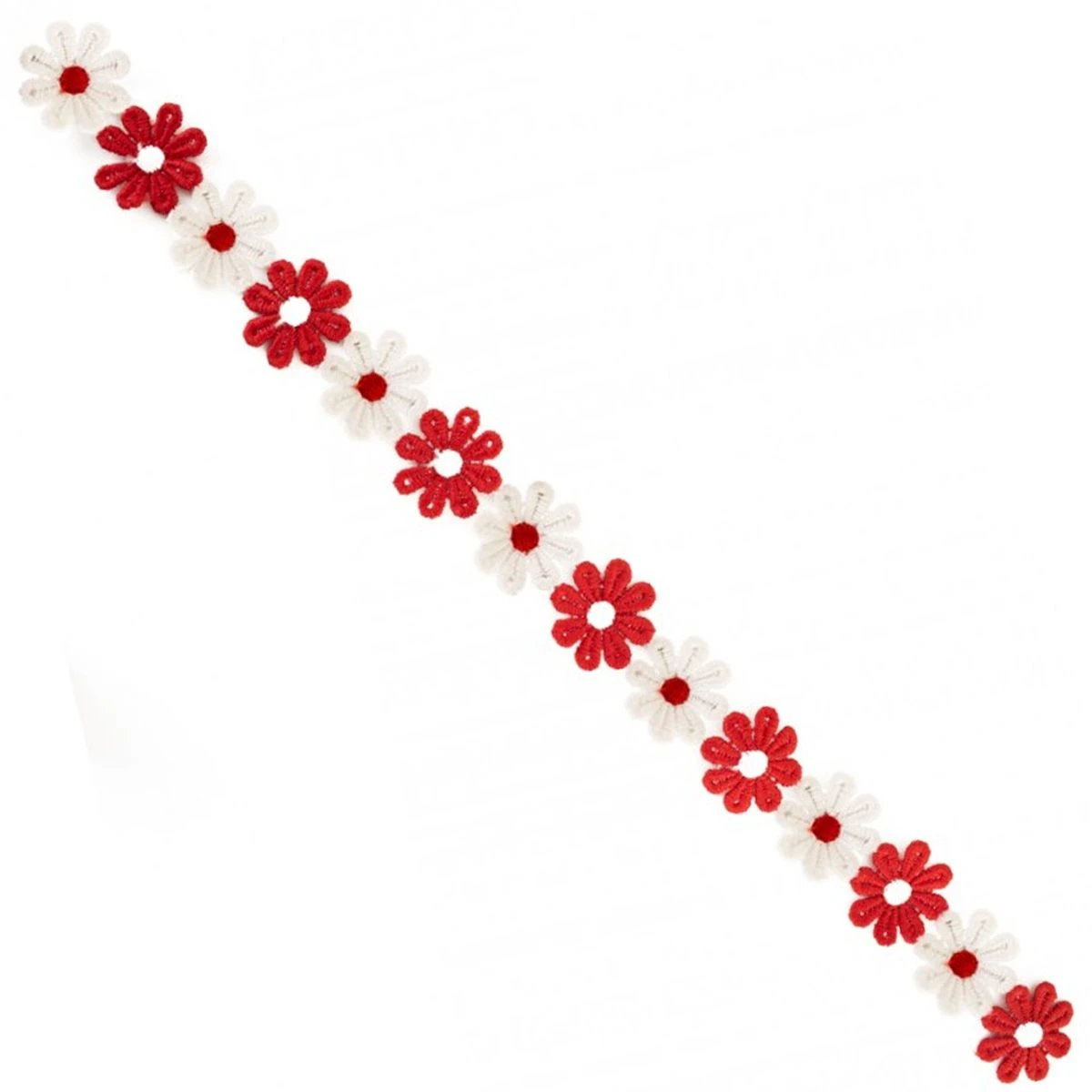 Mooie bloemetjesband in Brabantse kleuren. Deze band is drie meter lang en +/- 1,7 cm breed. Voor het pimpen van je kiel, jas, hoed, tas, enz.