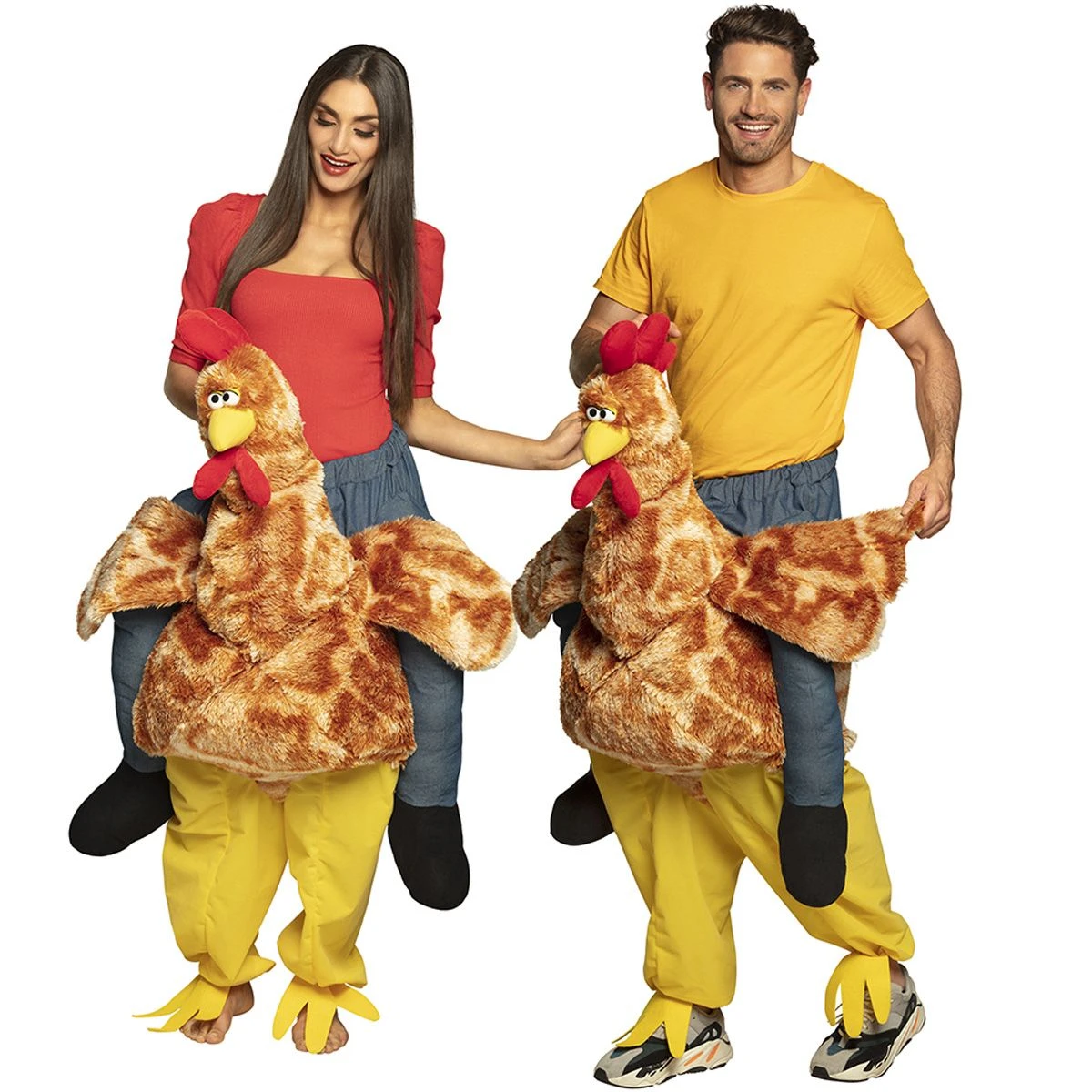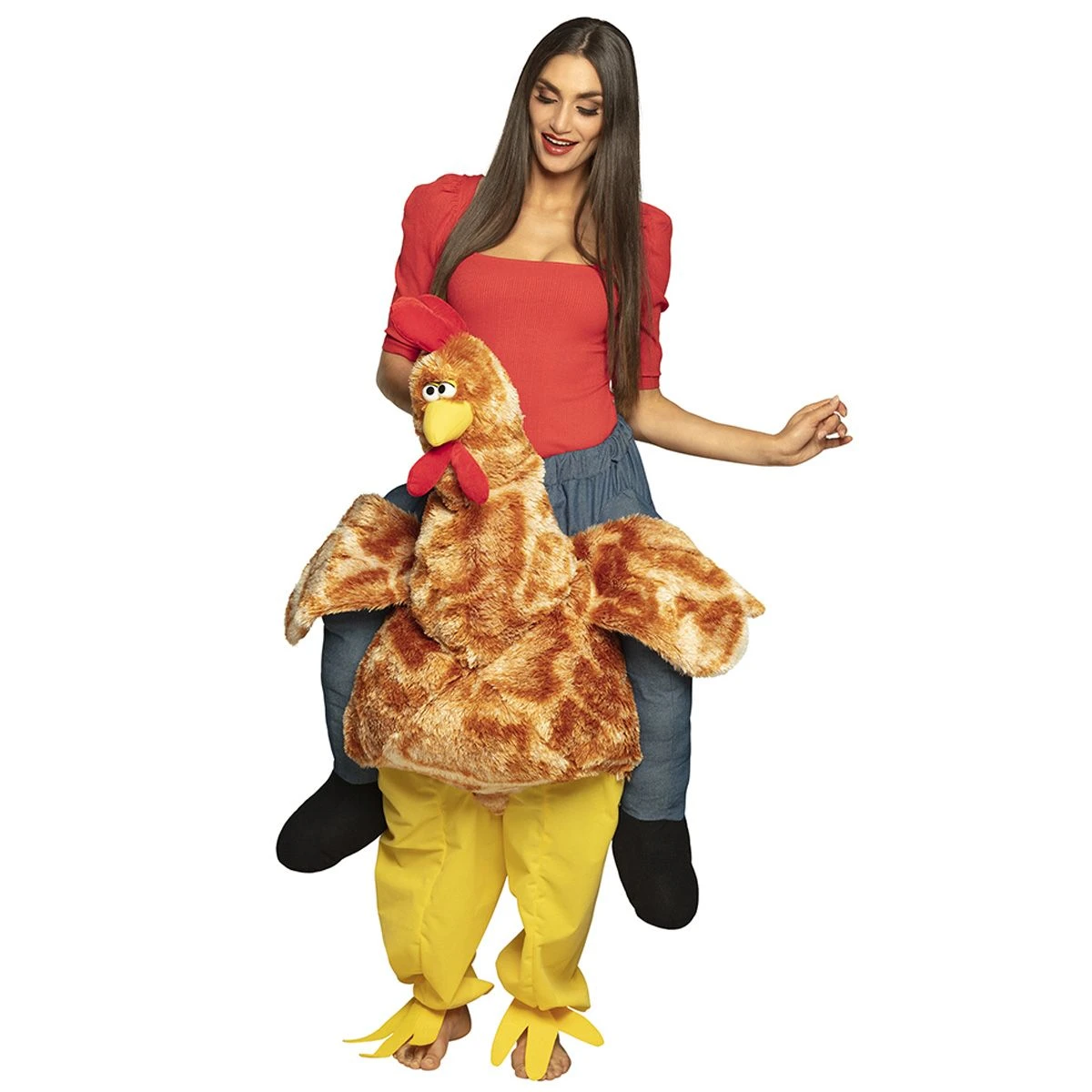 Carry me kip kostuum. Met dit kostuum lijkt het net alsof je op de rug van een kip zit.