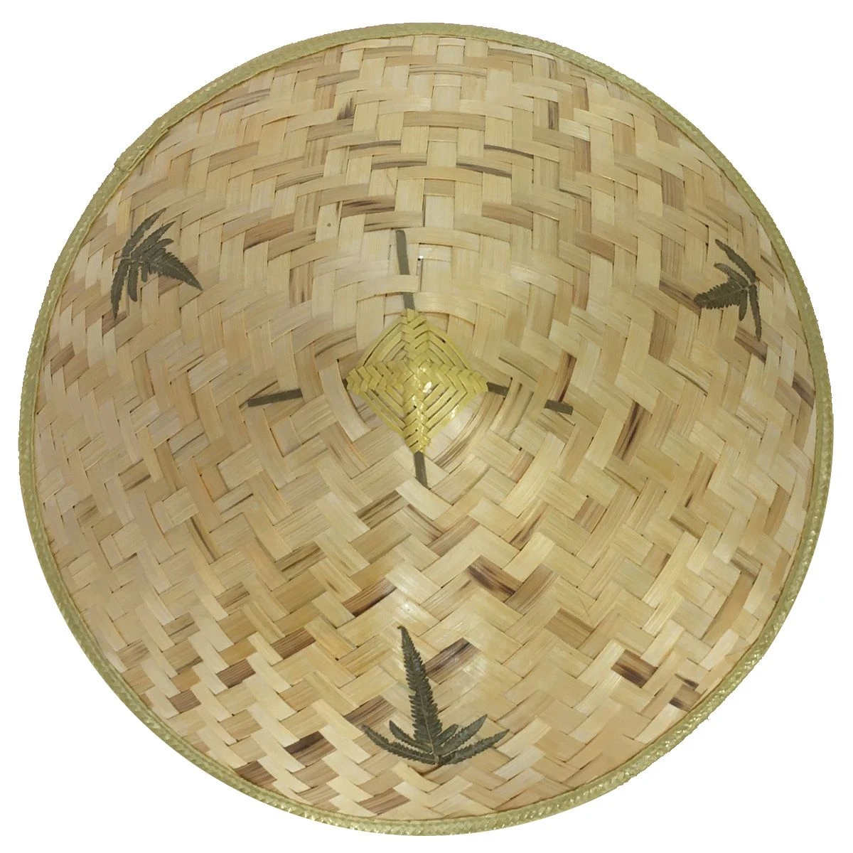 Mooie chinese hoed van gevlochten bamboe, met mooie blad decoratie. De hoed heeft een doorsnede van 43 cm. De perfecte hoed voor je chinese of japanse outfit.