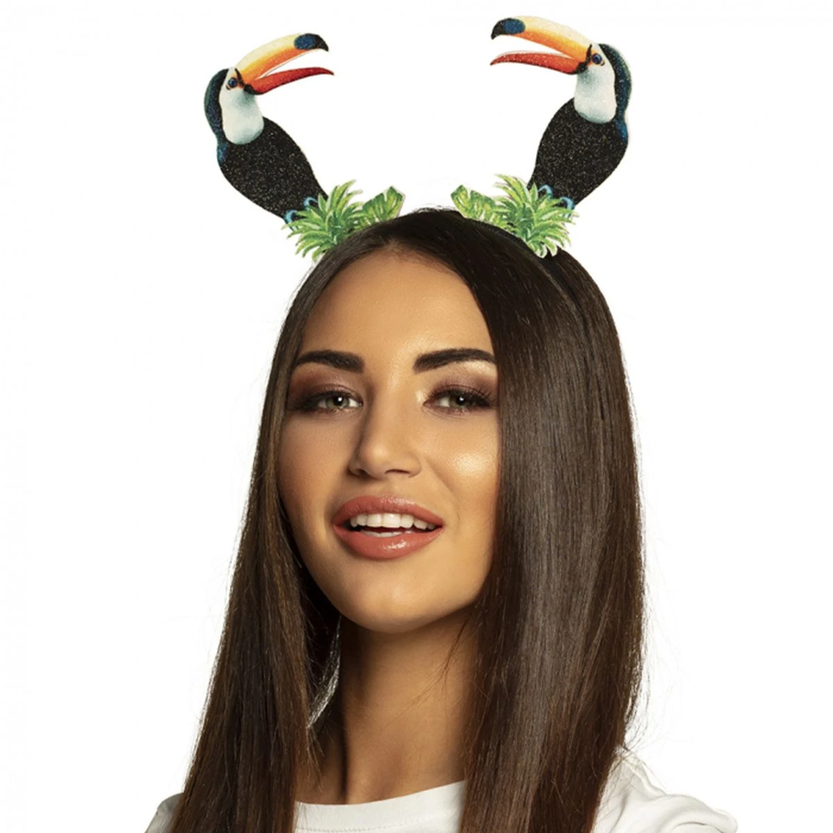 Superleuke haarband met toekans, leuk voor bij je tropische- of hawaii outfit.