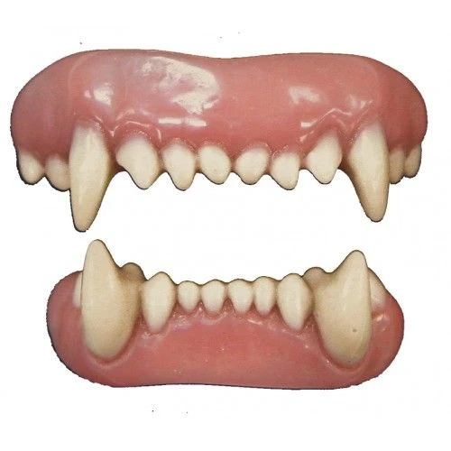 Luxe dieren tanden. De tanden schuif je over je eigen tanden heen. Niet geschikt voor kinderen.