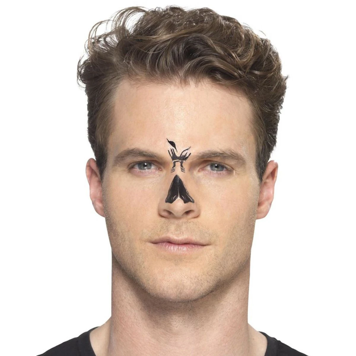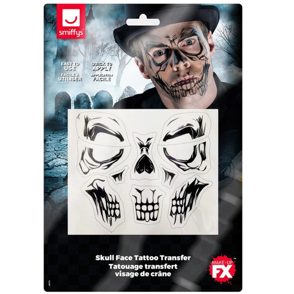 Neppe gezichtstattoo met het patroon van een skelet. Zodra je deze tattoo neemt, laat je de doden echt weer tot leven komen! Perfect om mensen aan het schrikken te krijgen tijdens Halloween!