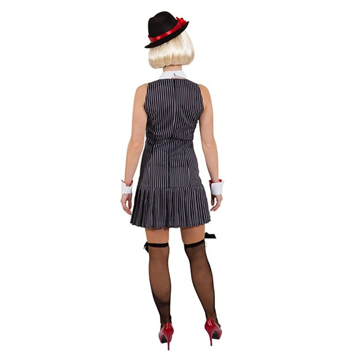 Gangster dame jurk met kraag, stropdas en manchetten.