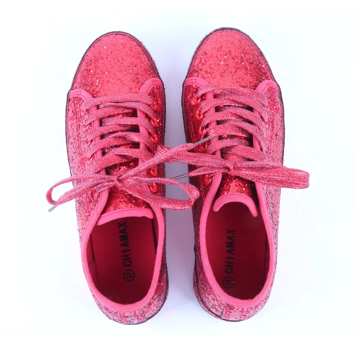 Met deze mooie glitter sneakers loop je stralend rond! Past perfect bij het Toppers thema ‘Rood’, of bij een foute party.