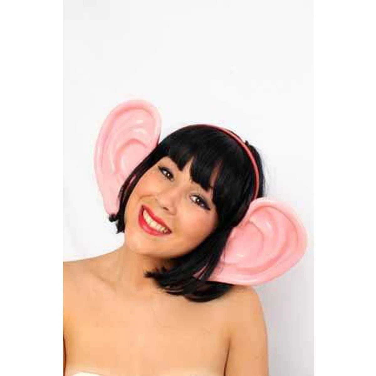 Grote oren van kunststof aan een diadeem.