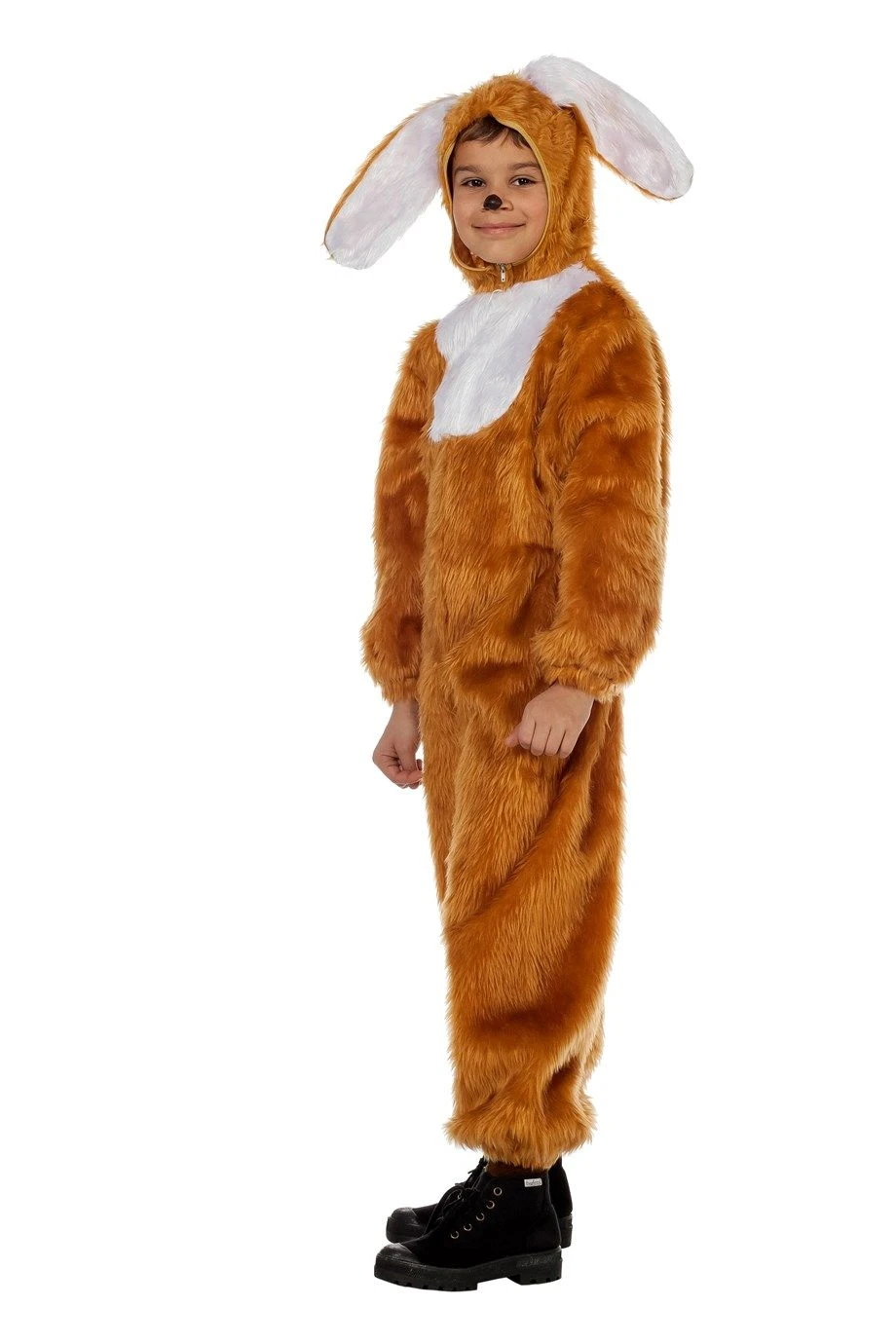 Hoe lief is dit bruine paashaaspak voor kinderen? Een prachtige outfit voor op een Paasfeest en daarna ook heel leuk te dragen tijdens carnaval. Dit paashaaspak bestaat uit een stuk en heeft een ritssluiting aan de voorzijde. Aan de capuchon van dit kinderpak zitten hazenoren vast gestikt. Zet de capuchon op je hoofd en je bent een echte paashaas!