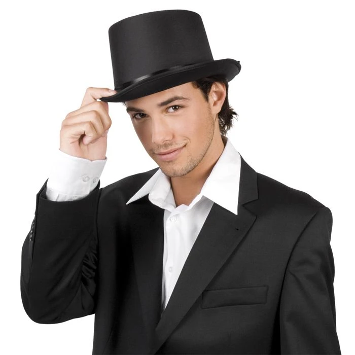 Hoge hoed met satijnen band. Leuk voor een gala!