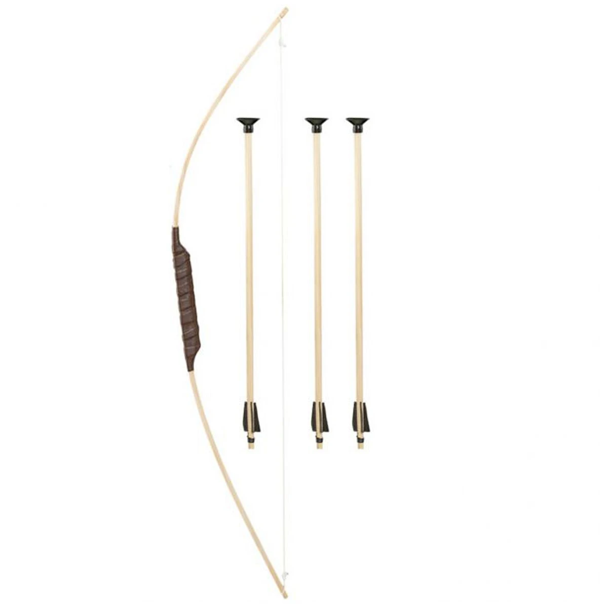 Pijl en boog set met houten boog van 80 cm met 3 pijlen.