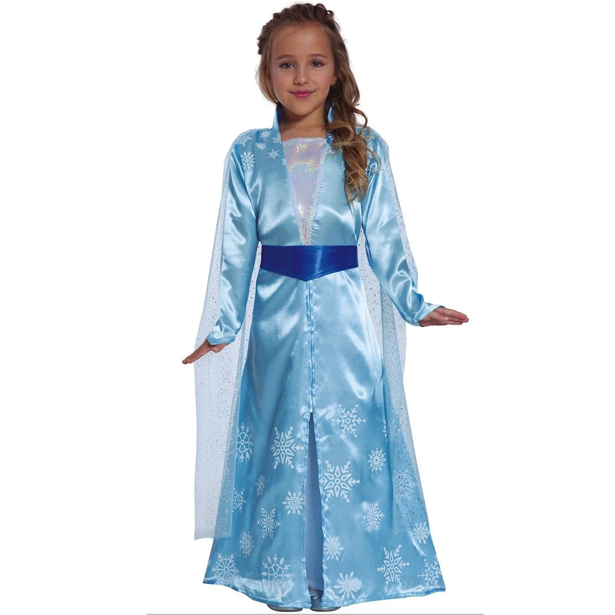 Schitterende blauwe jurk met ijskristallen en glitters. Combineer de jurk met een kroontje en jij bent helemaal de prinses of koningin!
