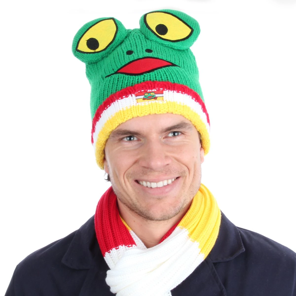 Super leuke grof gebreide kikkermuts, gevoerd met een heerlijke warme fleece stof.