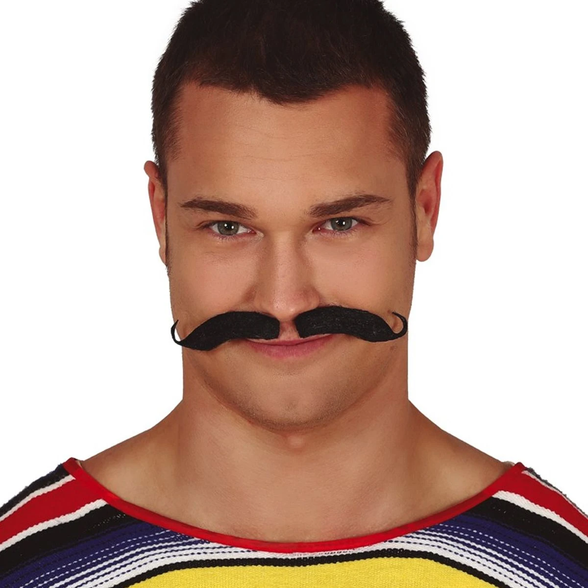 Erg mooie en lange plaksnor met omhoogkrullende punten. Als jij nog een stoere snor nodig hebt is dit een geweldige keuze. Perfect voor een gangster of mexicaanse outfit!