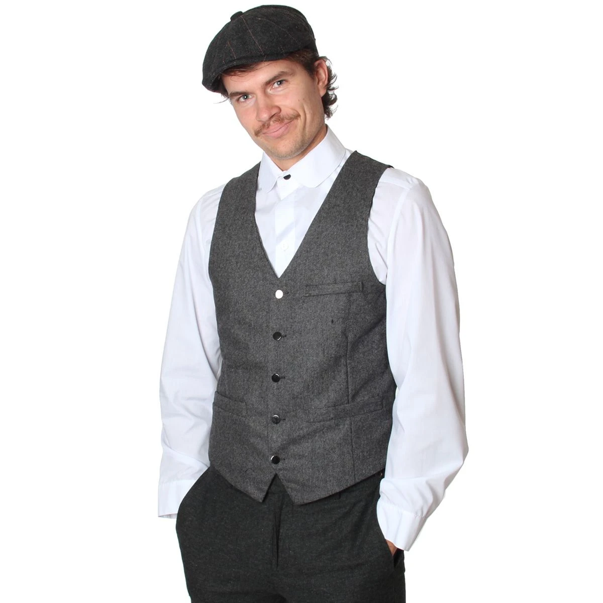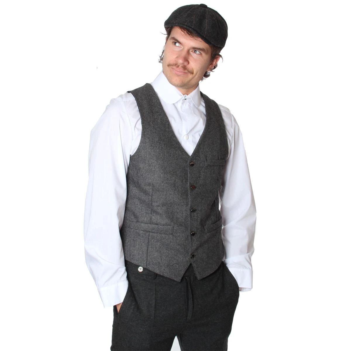 Luxe grijze gilet van een hoge kwaliteit tweet, wol-katoen combinatie. Zeer geschikt voor je Jaren 20 of Peaky Blinders outfit.