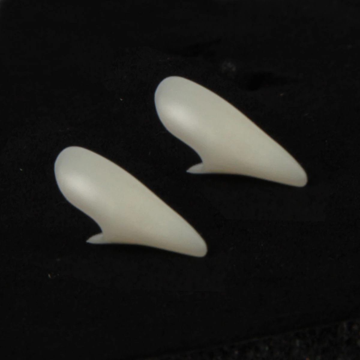 Set van 2 luxe vampier hoektanden, lengte 19 mm. De ivoorkleurige tanden hebben een zeer realistische look. Je bevestigt ze gemakkelijk op je eigen tanden met thermische tandenlijm, deze is verkrijgbaar in onze webshop. Verkrijgbaar in 2 lengtes, wij raden 17 mm aan voor voruwen en 19 mm voor mannen. De tanden worden geleverd in een luxe bewaardoosje.