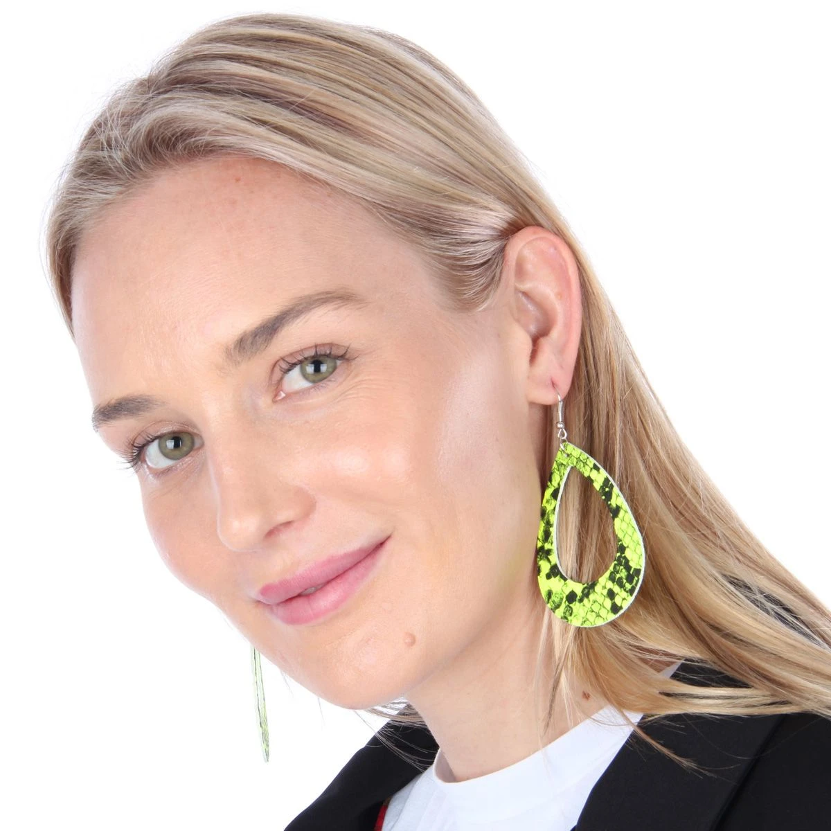 Deze Neon gele oorbellen met print maken je disco/hippie/flower power outfit helemaal compleet! Ze zijn van zeer licht materiaal, dus met een hoog draagcomfort. Verkrijgbaar in 4 verschillende kleuren.