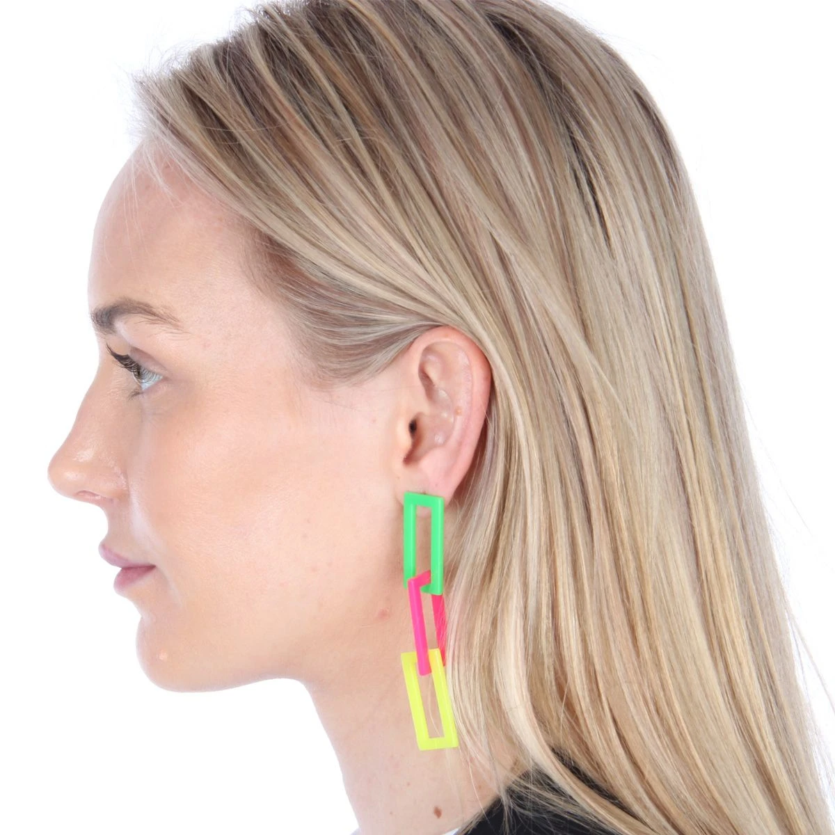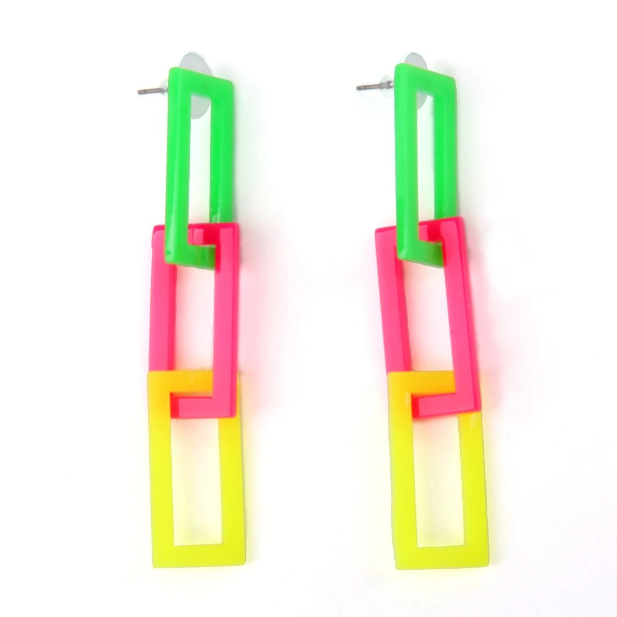Deze Neon schakel oorbellen in fluor groen/roze/geel maken je disco/hippie/flower power outfit helemaal compleet!Â