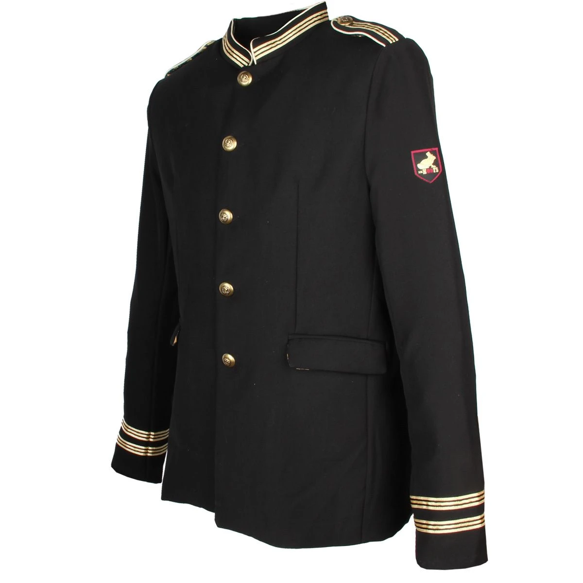Deze zwarte uniformjas heeft hetzelde model als onze uniformjas wol/polyester, echter is deze uitgevoerd in viscose/polyester. Viscose is een gladde en soepele stof, ademend en licht om te dragen. De jas is gevoerd en heeft praktische steekzakken en een binnenzak. De gouden accenten en knopen geven deze jas een luxe uitstraling.