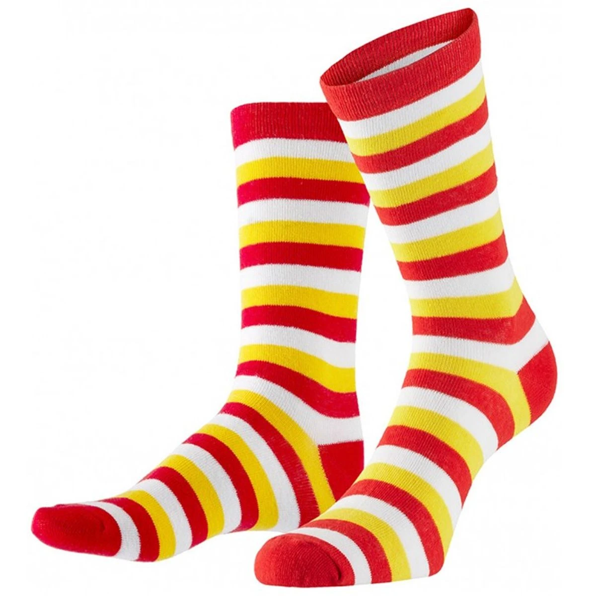 Super leuke rood-wit-gele sokken. Perfect als je van top tot teen in het rood wit geel carnaval wil vieren.Â