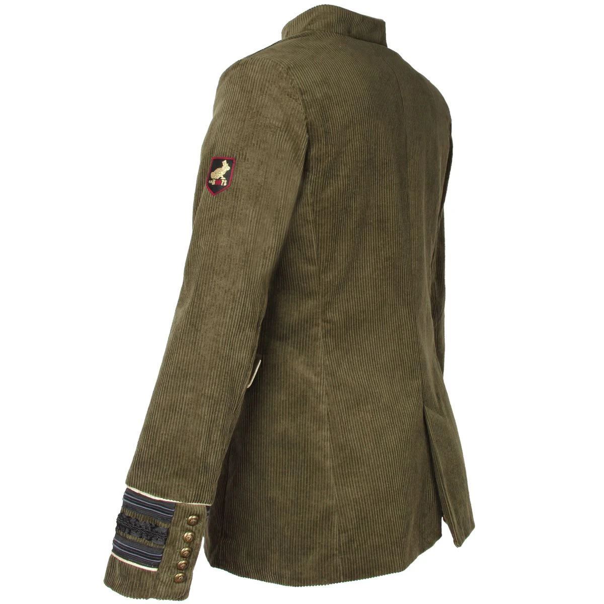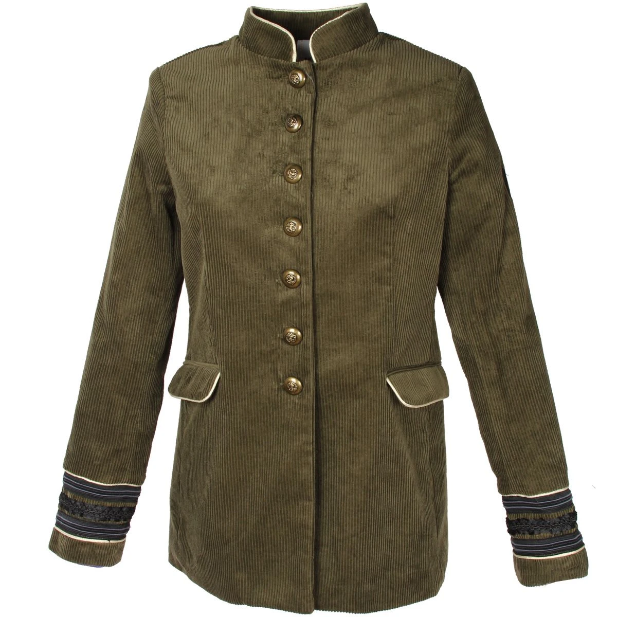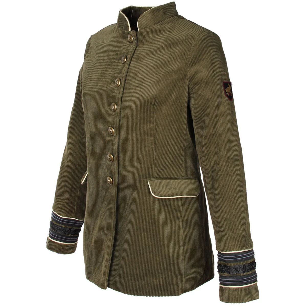 Exclusief bij Hoofs! Zeer mooie, gevoerde uniform damesjas van ribfluweel. Deze chique Oeteldonkse jas uit onze eigen productie heeft een prachtige, olijfgroene kleur met gouden accenten en gouden bolknopen. De zachte ribfluweel van 100% katoen geeft een moderne uitstraling aan deze jas en zorgt bovendien voor een zeer hoog draagcomfort.