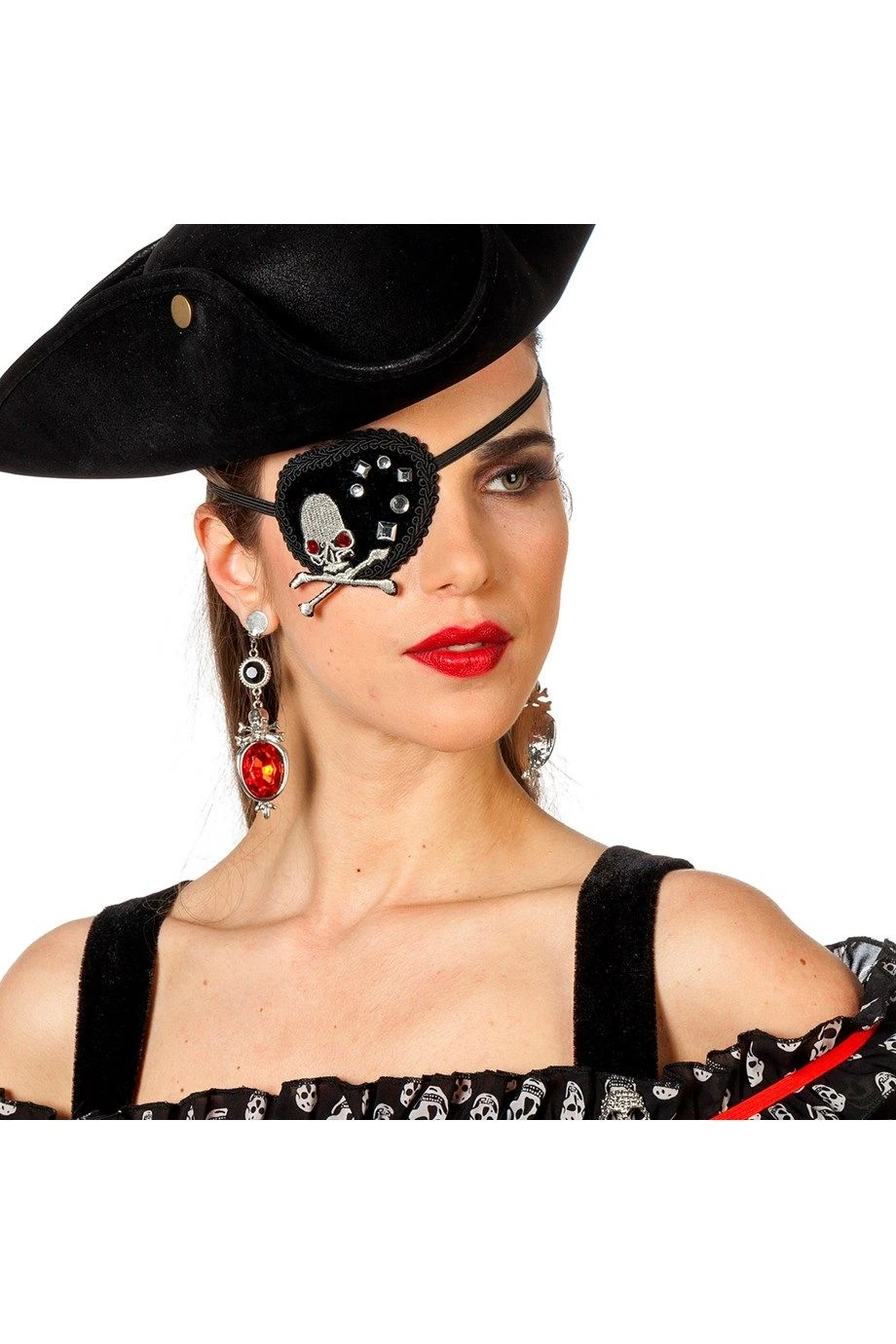 Zwart Ooglapje doodskop met daarop een doodskop applicatie, steentjes en omkaderd met zwart band