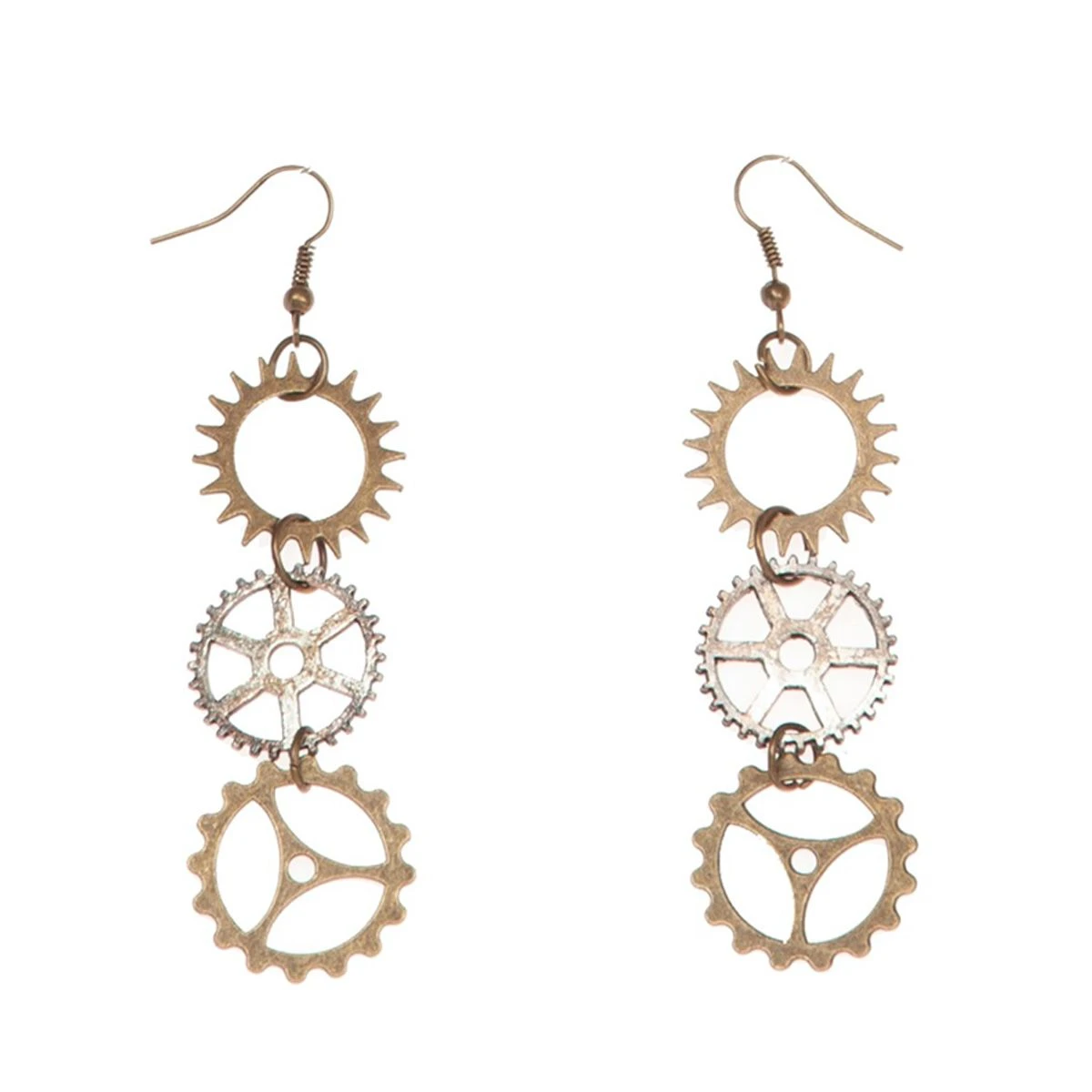 Deze oorbel hangers van aan elkaar gekoppelde tandwielen maken je Steampunk outfit compleet