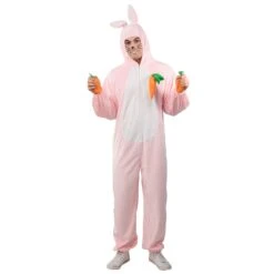 Met dit prachtige, zachtroze paashaaspak verstop jij op de allerleukste manier de paaseieren met Pasen. Dit pak is inclusief wortels, in de wortels zit een pompfunctie, als je in de wortels knijpt gaan de oren wiebelen, hoe leuk is dat?