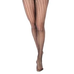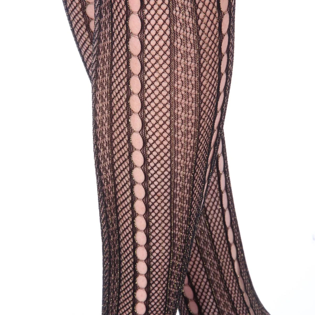 Zwarte kanten panty met gouden glitters. De panty is in one size maat, dus geschikt voor XS t/m XXL.