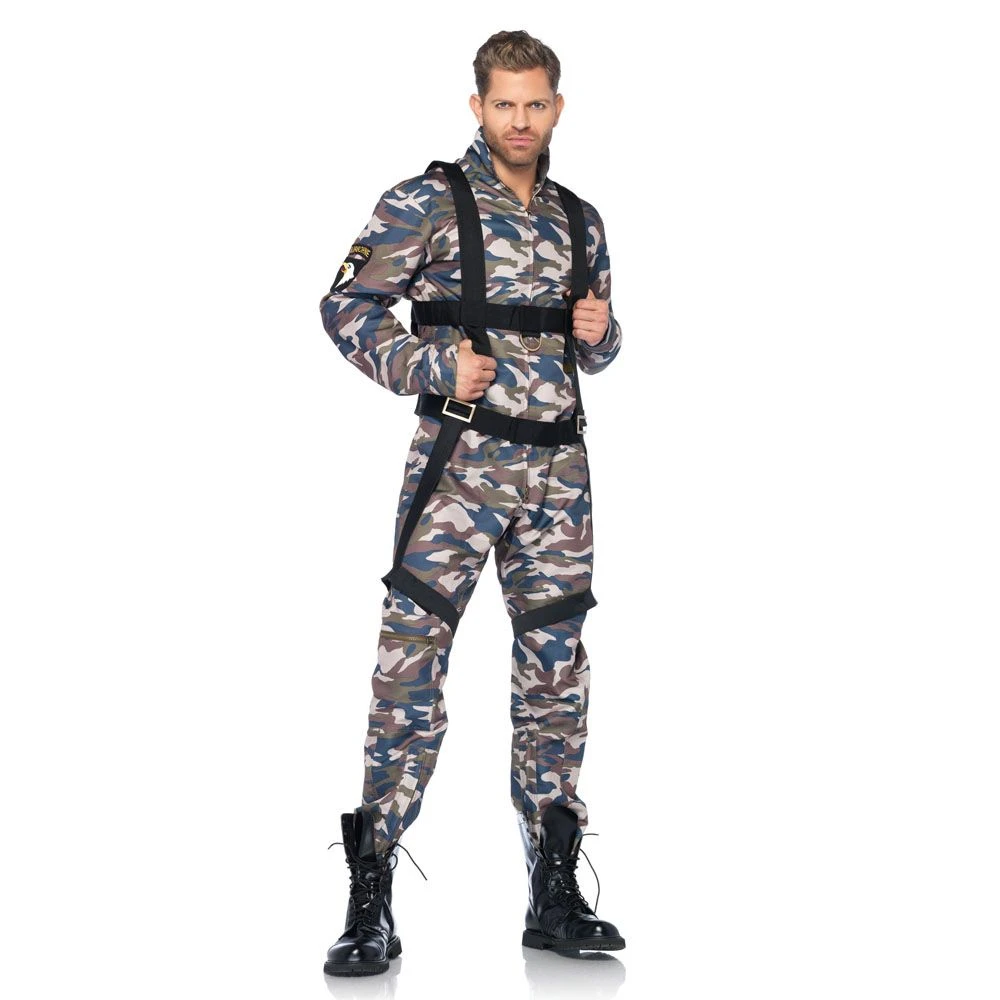 2 Delig Kostuum Set “Paratrooper” bestaande uit een camouflage vlucht pak en harnas.