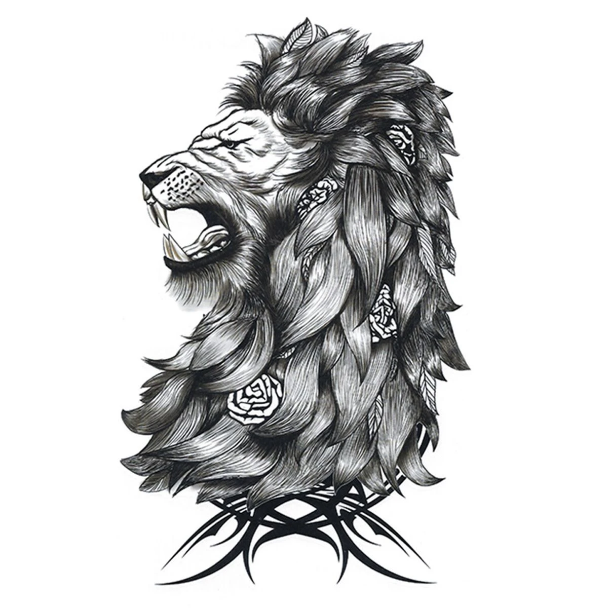 Neppe tattoo van een leeuwenkop met onderaan een tribal. Eenvoudig aan te brengen!