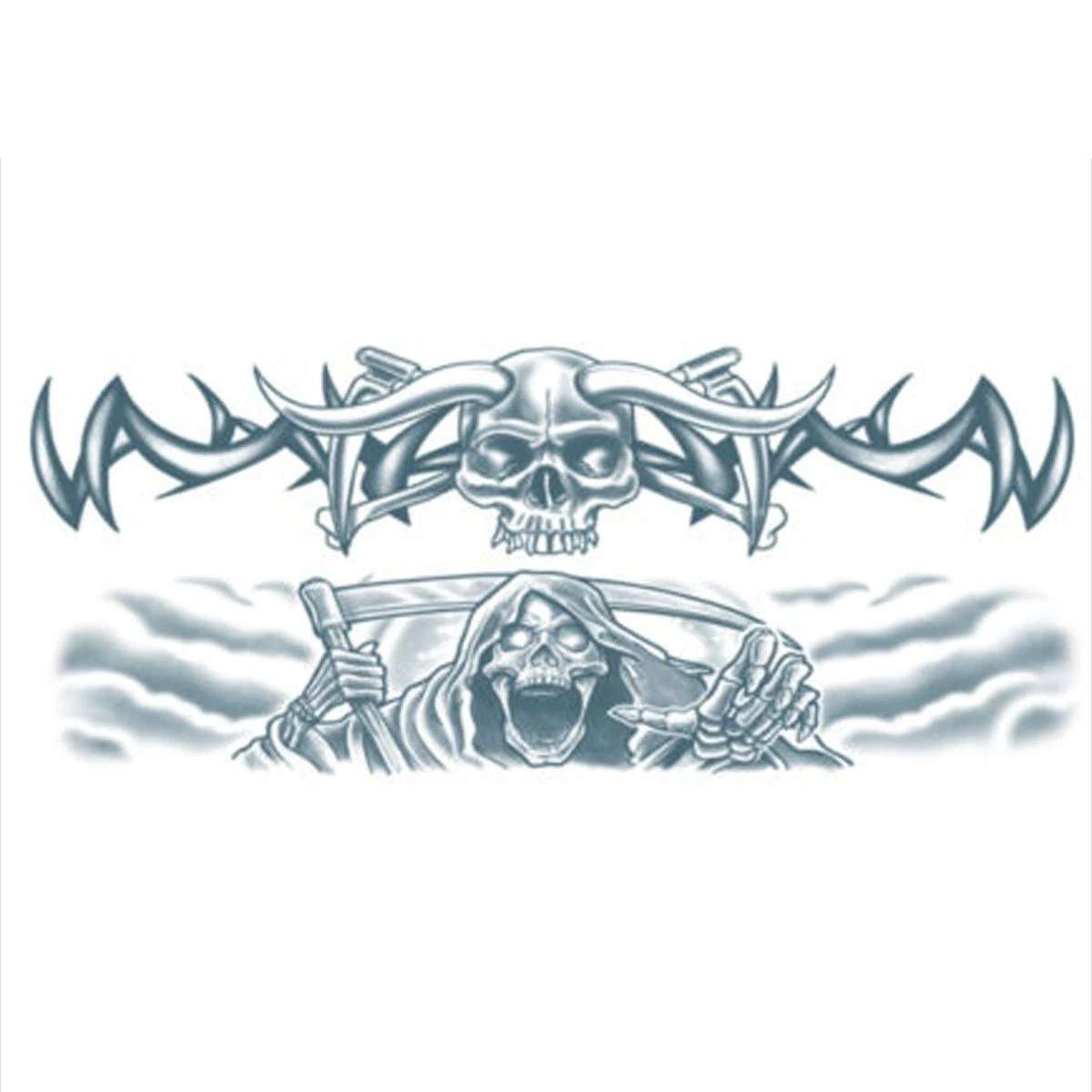 Neppe tattoo van een skull en een reaper. Eenvoudig aan te brengen!