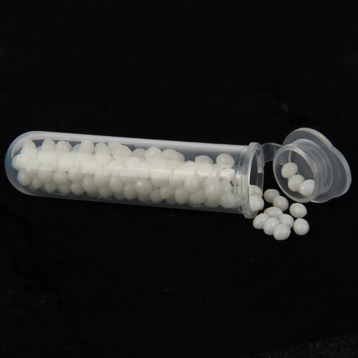 Buisje met bolletjes thermische tandenlijm. Geschikt voor het verlijmen van Vampier Hoektanden. Je maakt de bolletjes zacht in warm water en drukt ze met een klein lepetje in de Vampier Hoektanden, daarna druk je de tanden op je eigen tanden. Druk de Vampier Hoektanden er tegenaan en je bent klaar om te bijten. Lees de bijgeleverde gebruiksaanwijzing voor gebruik.