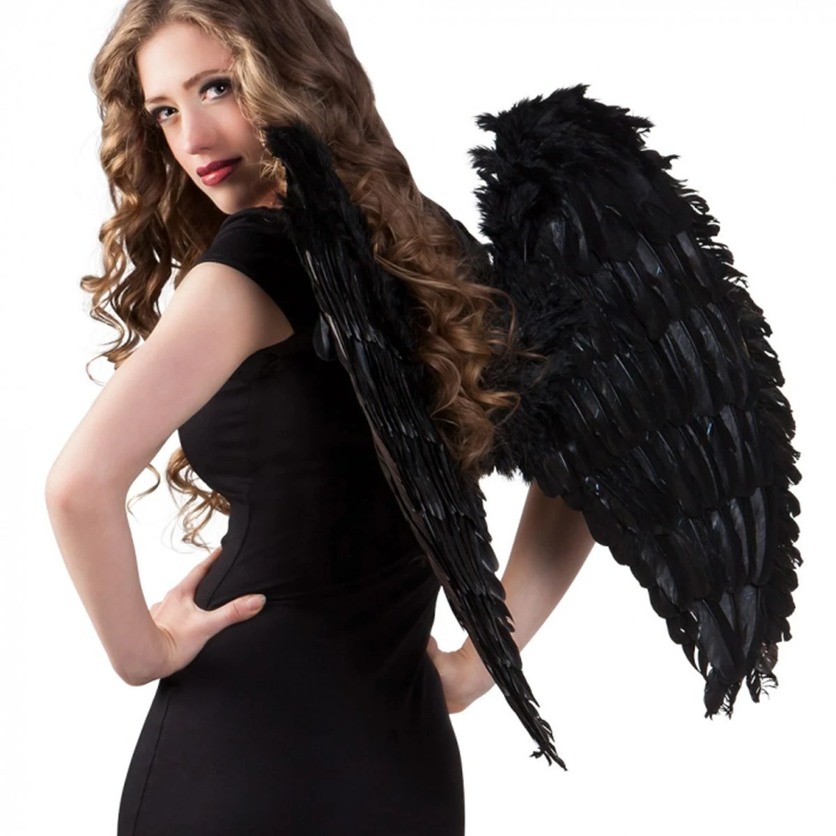 Deze schitterende zwarte vleugels zijn zeer vol bezet met zwarte veren. Aan de bovenzijde zit een rand marabou veertjes voor een extra mooi effect. De lengte van de vleugels is 60 cm en de spanwijdte is 75 cm. Je bevestigt ze gemakkelijk om je schouders met de elastieken banden. De vleugels zijn buigbaar, dus in elke gewenste stand te buigen. Ze maken je duivel of halloween outfit helemaal af!