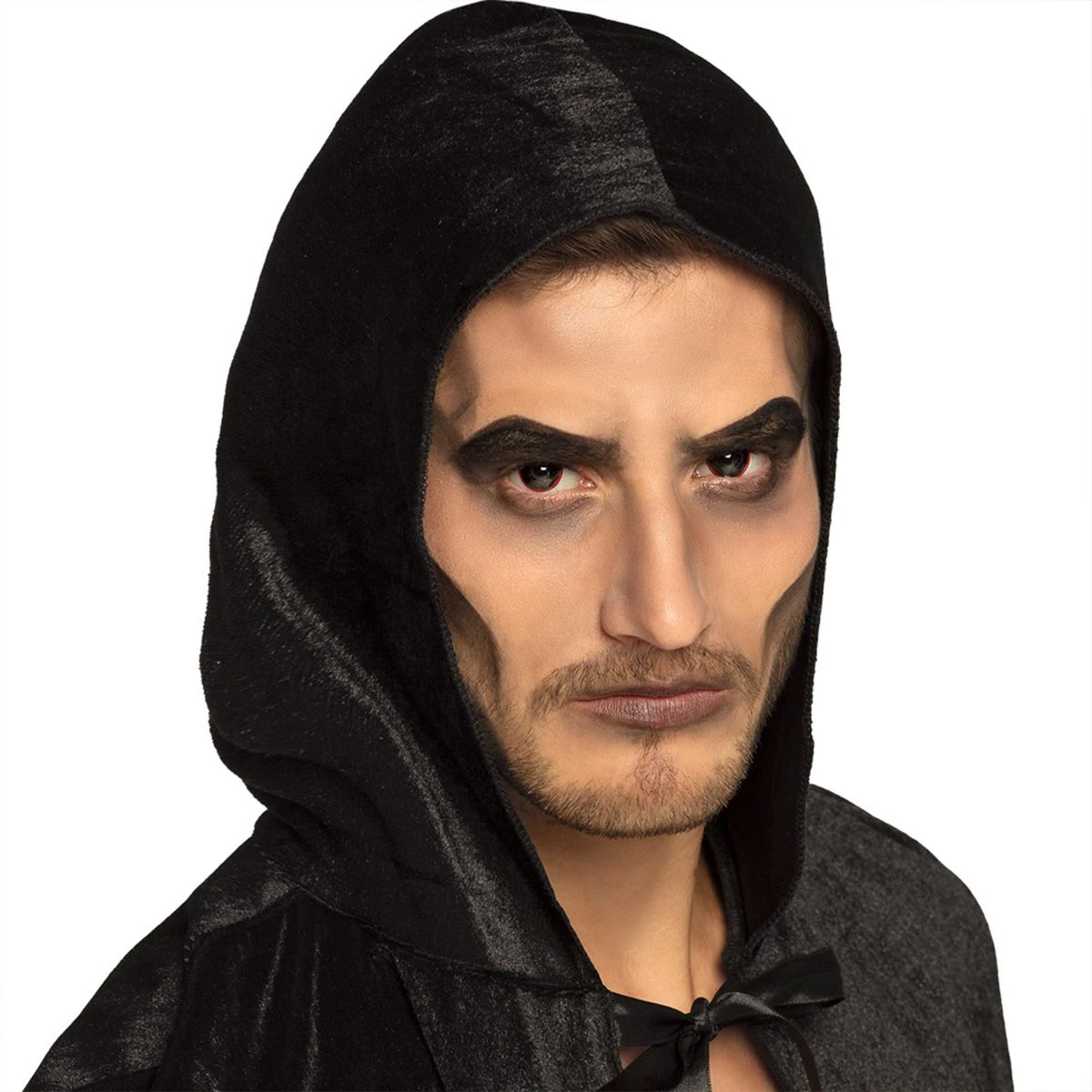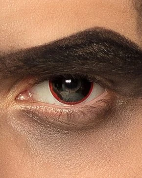Deze zwarte kleurlenzen met rode rand zijn de finishing touch bij jouw Halloweenkostuum, carnavalsoutfit of je kleding voor een ander themafeestje!